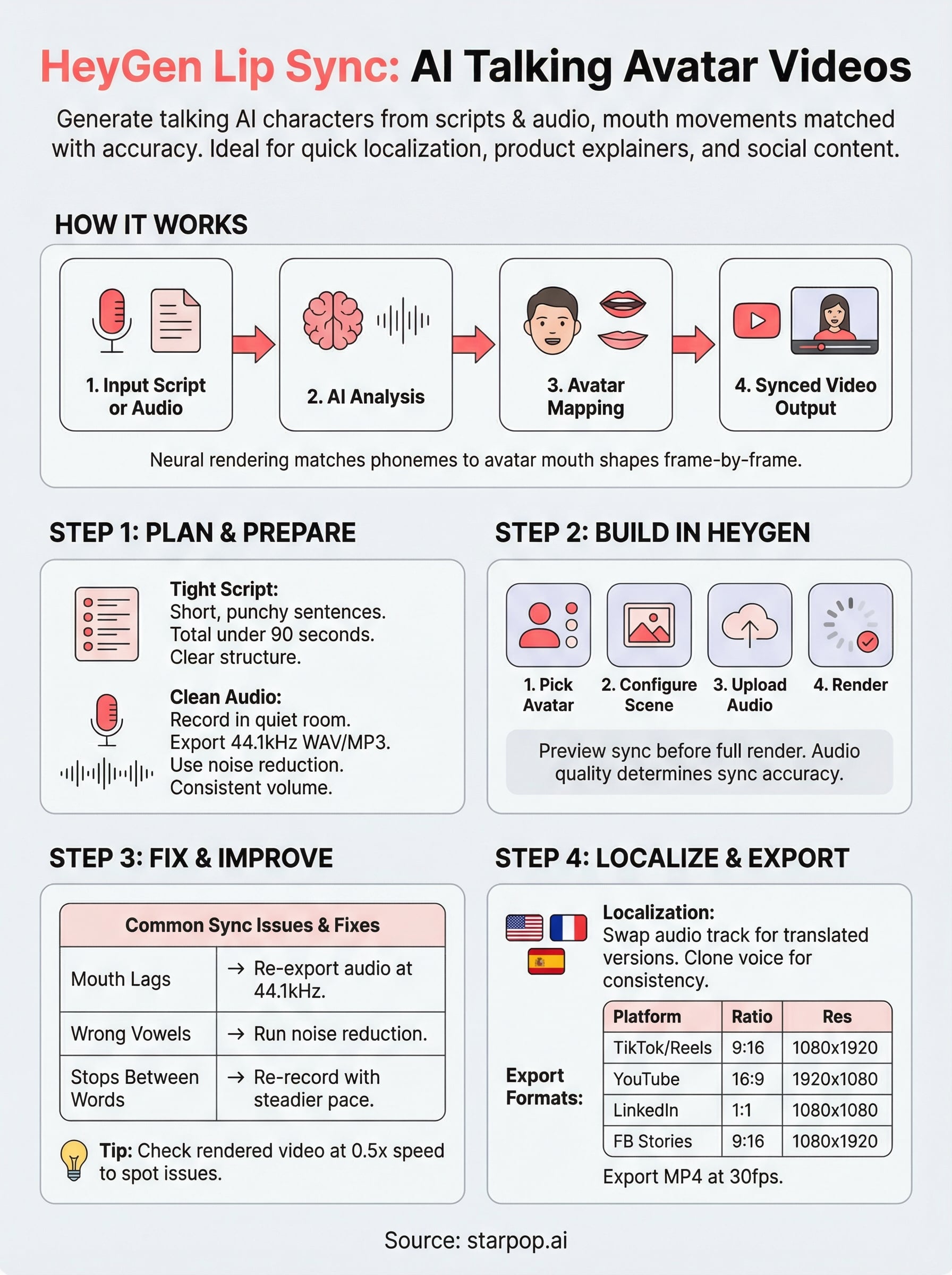 If you're exploring AI lip sync for ads or social content at scale, it's worth knowing that platforms like Starpop bundle studio-grade lip syncing with video generation, voice cloning, and 100+ language support in a single workspace, no tool-hopping required. We'll touch on that comparison later. For now, let's get into how HeyGen's lip sync works step by step.